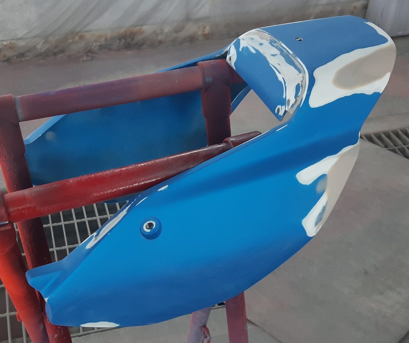 今回は2025年のシーズンで損傷したテールカウルの補修と塗装
