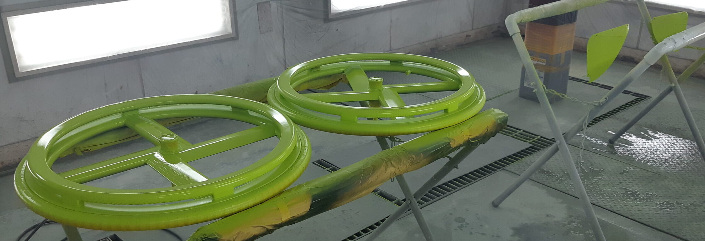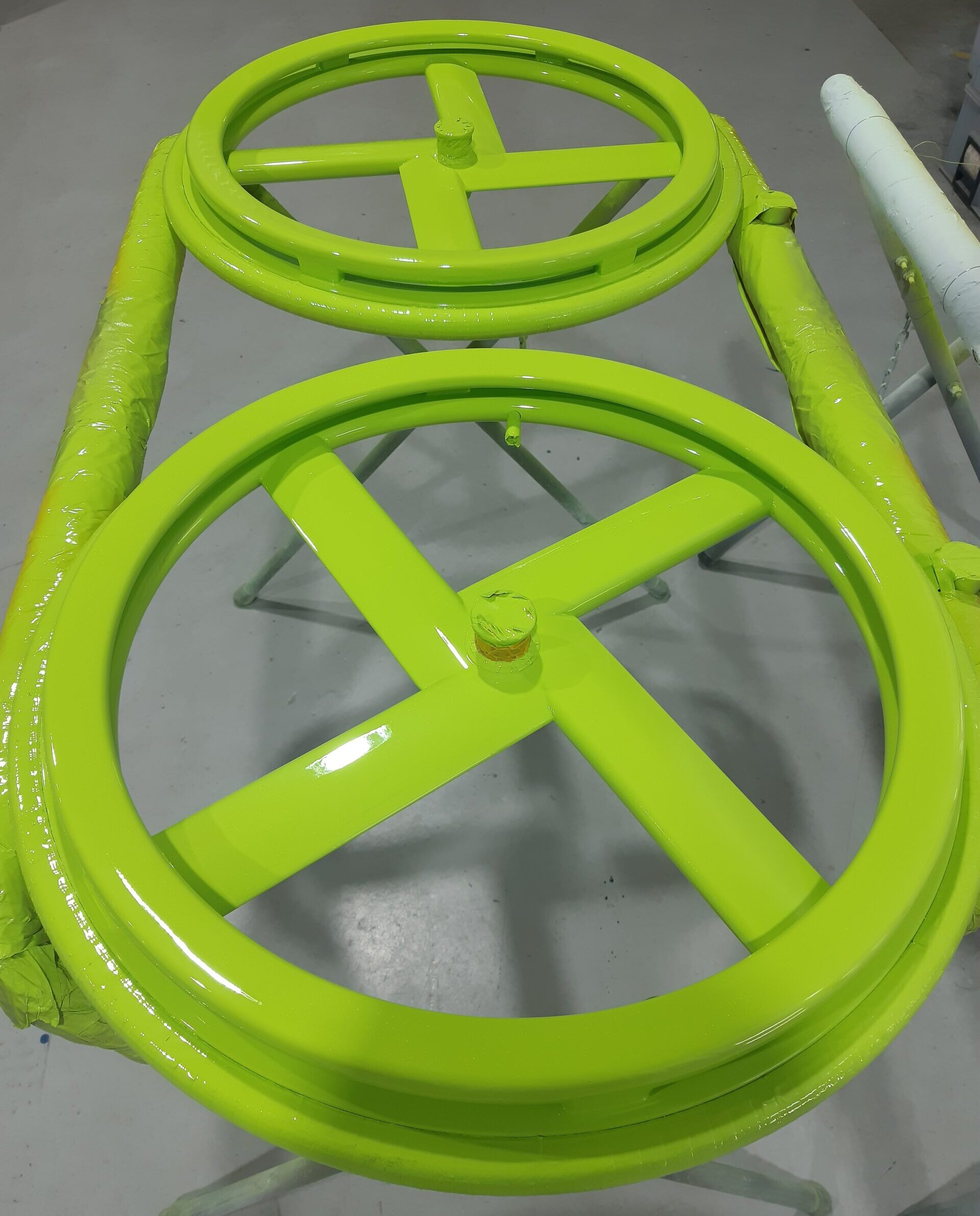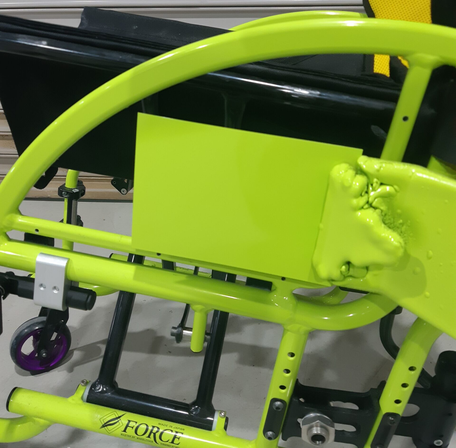 ハンドリムの隙間は塗装が難しく大変ですが、