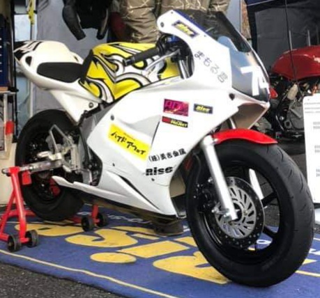 アッパーカウル、アンダーカウル、シートカウルは白色ゲルコートのままでしたが、今回タンクカバーのみカスタムペイントを施されたものでした。