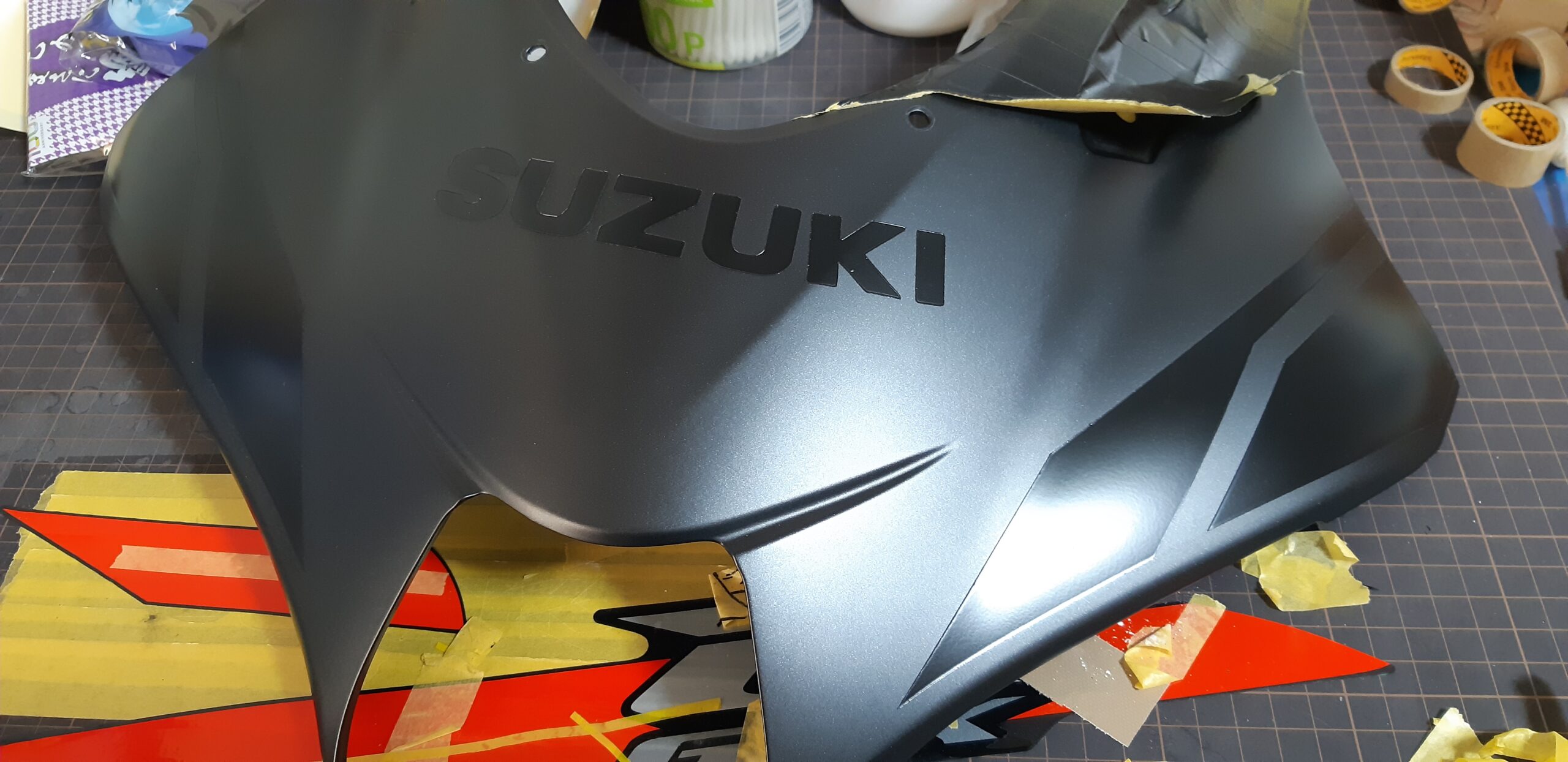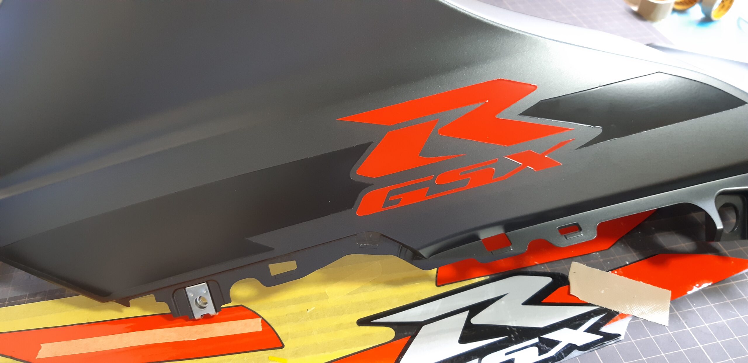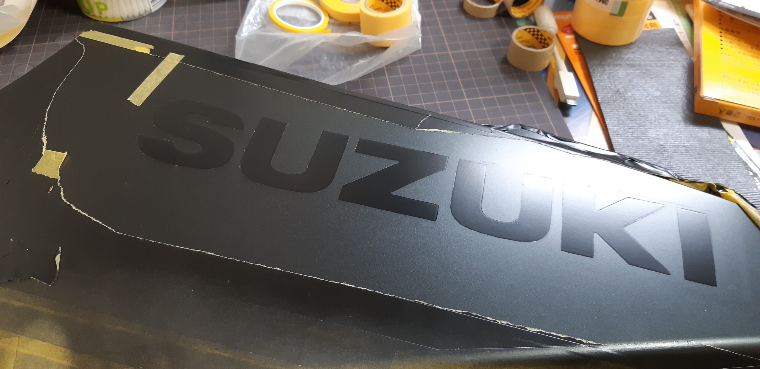 純正デカールの文字やライン位置をトレースしつつ