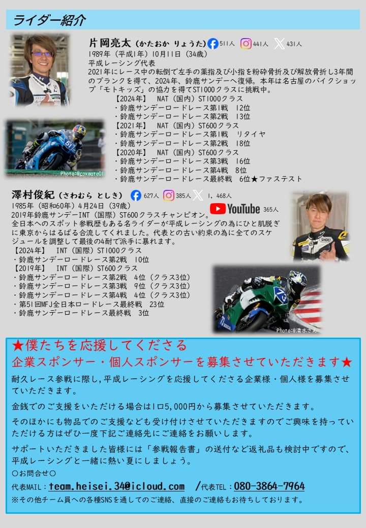 また、参戦に伴いご支援いただける法人様、個人様も募集させていただいております。