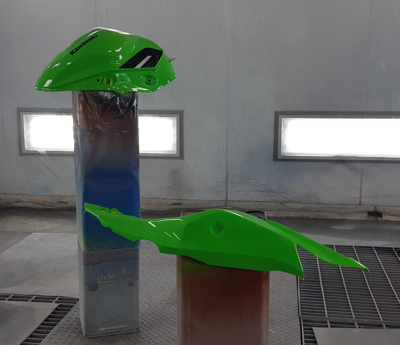 前行程のサフェーサーを研ぎ、いよいよ塗装です。